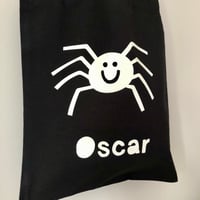 Glow in the dark cotton trick or treat bag personalised with your choice of name and spooky spider icon. Use it year after year!