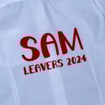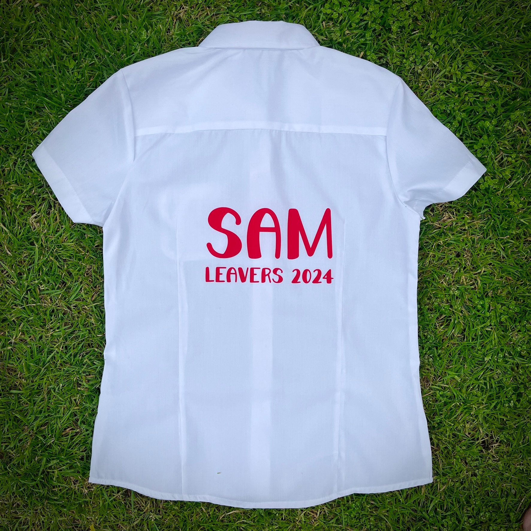 Simply iron onto the reverse of any school shirt using a hot iron (without steam) to create a special momento of their last day at school. Perfect for them to decorate with all their friends names afterwards at school.