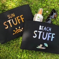 Each pouch will have SUN STUFF as standard and then option to a choose either gold or silver holographic font.