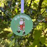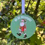Topical weight loss jab wooden Christmas bauble decoration featuring a skinny Santa who has been using the weight loss method!